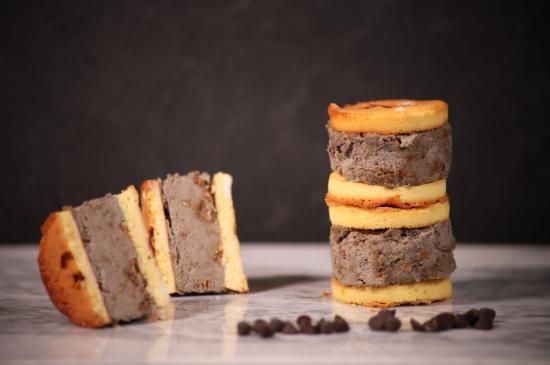 しっとりした食感のフランスの焼き菓子「カトルカール」で「NOUGAT℃【ヌガード】」を挟み込んだサンドです。
